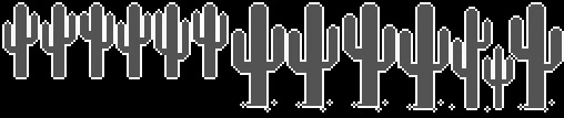 The Cactus is one of the obstacles and when the Lonely T-Rex touches it, he will die. Some of the cacti stand alone, while some are in clumped together in groups of 2 and 3.